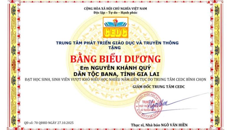 5 Tháng Chín, 2025Nhân dịp 20/11: Khen thưởng phụ huynh và học sinh ở Gia Lai