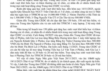 14 Tháng Mười Một, 2025Ngày 27/10/2025, ThS.NB Ngô Văn Hiền, Giám đốc Trung tâm Phát triển Giáo dục và Truyền thông (Trung tâm CEDC)...