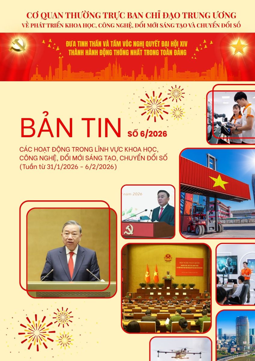 Trân trọng giới thiệu tới bạn đọc Bản tin Khoa học công nghệ, đổi mới sáng tạo và chuyển đổi số số 6 năm 2026 của Cơ quan Thường trực Ban Chỉ đạo Trung ương về phát triển khoa học công nghệ, đổi mới sáng tạo và chuyển đổi số.