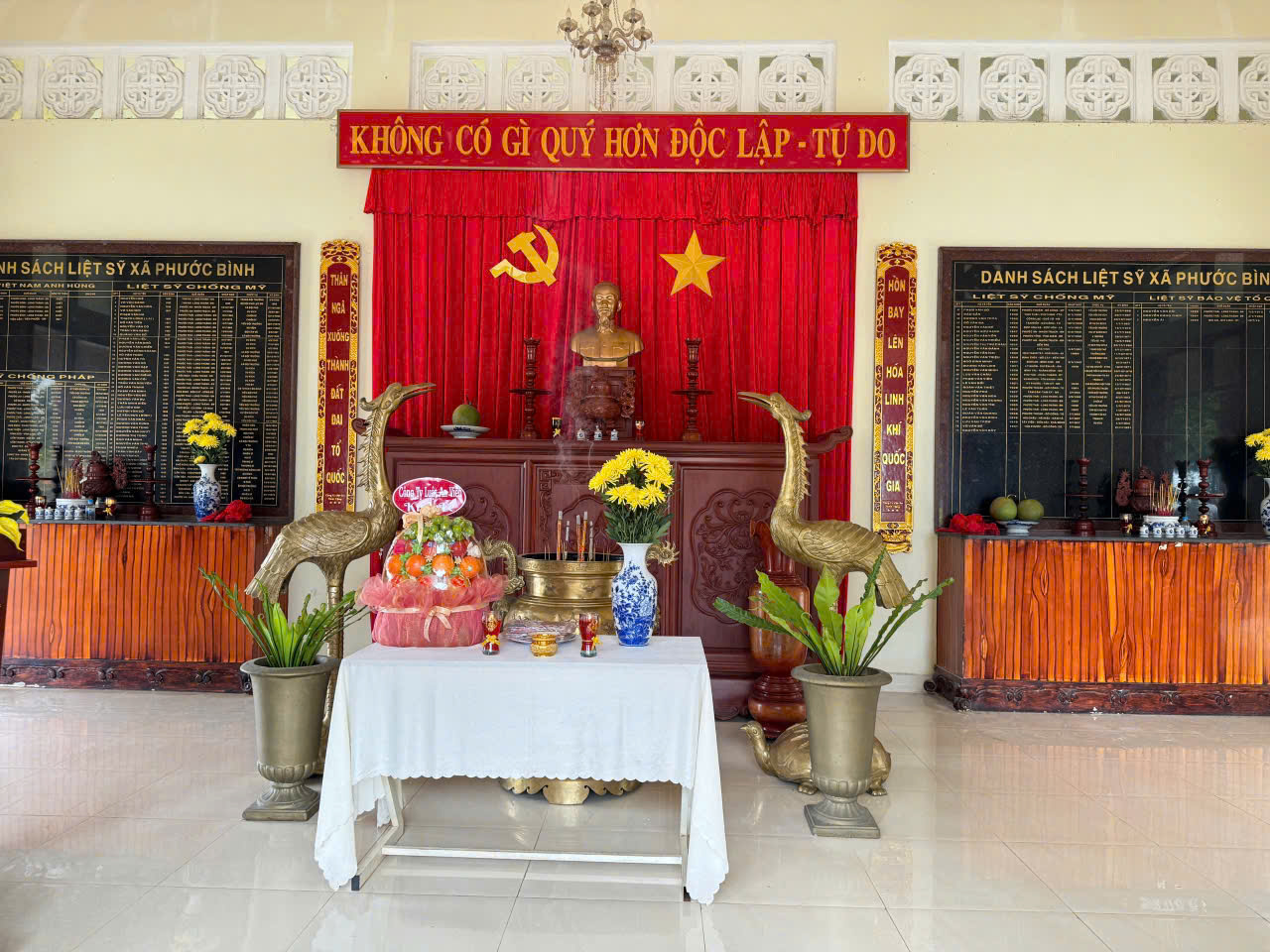 CCB Vũ Văn Dán, hội viên Hội HTGĐLS TP.HCM – phụ trách Tổ tìm kiếm thông tin liệt sĩ khu vực phía Bắc vừa cho biết, nhân chuyến thăm và tặng quà cho gia đình liệt sĩ của Sư đoàn 5 quê thuộc các tỉnh phía Bắc, ông đã vận động tài chính nhờ một cơ sở khắc chữ nổi tiếng ở Nam Định khắc đôi câu đối “Thân ngã xuống thành đất đai Tổ quốc/Hồn bay lên hoá linh khí Quốc gia“ để tặng nơi thờ tự gần 100 liệt sĩ, Mẹ Việt Nam Anh hùng thuộc xã Phước Bình huyện Long Thành (cũ) tỉnh Đồng Nai.